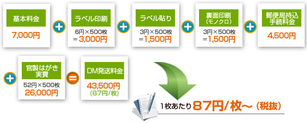 お礼状(官製はがき:直接印刷)を500枚送る場合